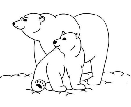 Раскраска белый медведь с медвежонком