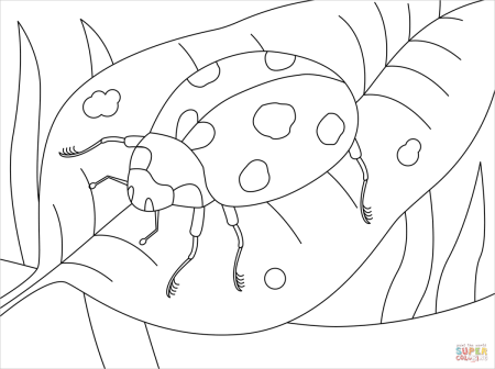 Божья коровка на листочке раскраска