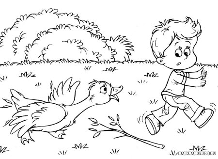Мальчик и утенок раскраска