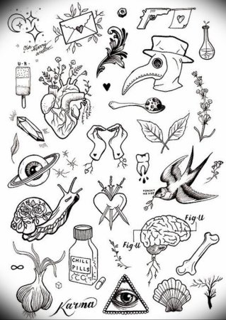 Тату эскизы много на одном листе