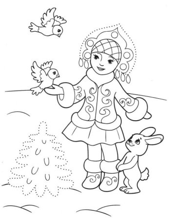 Раскраски зимний пейзаж для детей 4-5 лет
