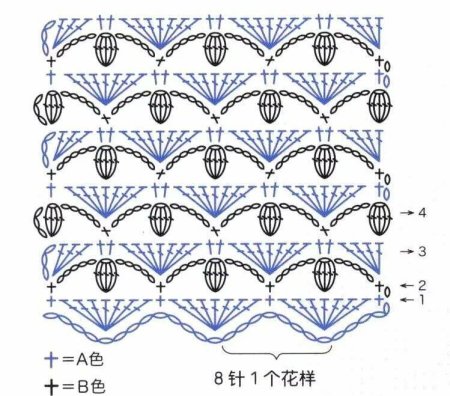 Чередование узоров крючком схемы
