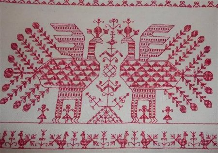 Старинное полотенце представляет собой настоящее произведение искусства, оно украшено изящными и тонкими узорами, которые являются истинным воплощением местной культуры и традиций. Рисунки на полотенце отличаются оригинальностью и неповторимостью, каждая линия и каждая деталь пронизаны заботой и мастерством наших предков. Взглянув на эти узоры, мы можем почувствовать себя связанными с историей и духом этого края, а также насладиться его уникальной красотой и изысканностью.