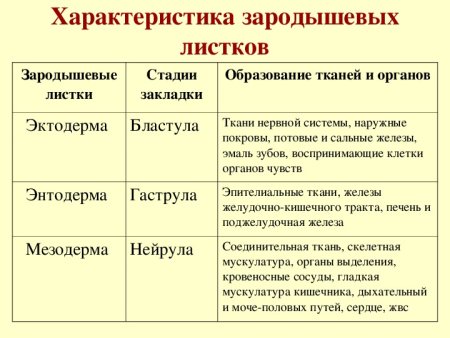 Зародышевые листки схема ЕГЭ