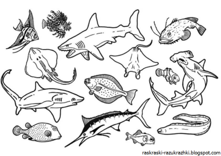 Морские рыбки раскраска