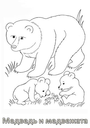 Раскраска Медведица с медвежатами для детей